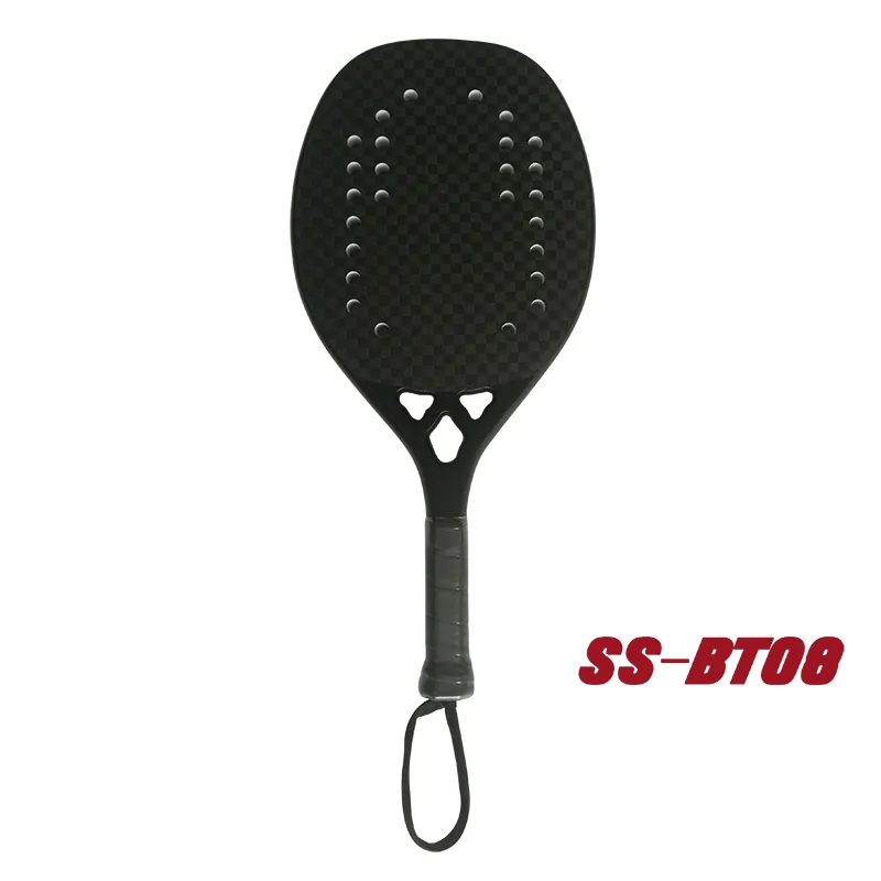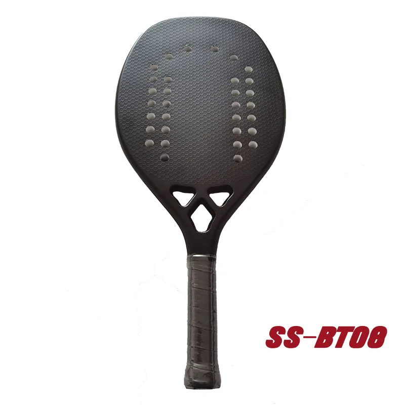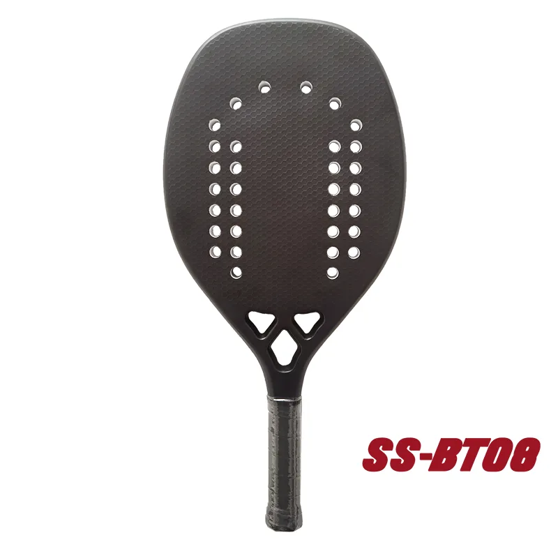 raquete de tênis de praia 20mmO modelo SS-BT08 é uma raquete de padel cheia de carbono. Para o SS-PR01 padrão, os materiais da face são de fibra de carbono, o material da estrutura é de carbono total e o núcleo de memória EVA. O carbono é amplamente utilizado na raquete de padel, o carbono é de malha única, com forte regidez, mais durável que a fibra de vidro.