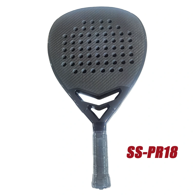 Design de design personalizado Diamond 3k Carbon Padel Racket com Smart Bridge Model SS-PR04é uma raquete completa de carbono padel. Para o SS-PR18 padrão, os materiais face são de 3K de fibra de carbono, o material da estrutura é de carbono completo e o núcleo da memória EVA. O carbono 3K é os materiais populares, sua urdidura e tricô, incluem as vantagens de fibra de vidro e carbono, desempenho estável. Área do coração projetado especificamente com ponte inteligente para precisão e controle extras.