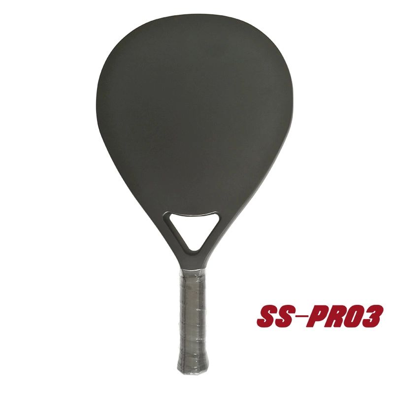 Raquete de padel de fibra de carbono de fibra de vidro Modelo SS-PR03 é raquete de padel de carbono completo. Para o SS-PR03 padrão, os materiais da face são de fibra de vidro, o material da estrutura é de carbono e o núcleo de memória EVA. Fibra de vidro é o material comum, as raquetes de padel com face de fibra de vidro são boas no controle, mas menos durabilidade, adequadas para o iniciante.